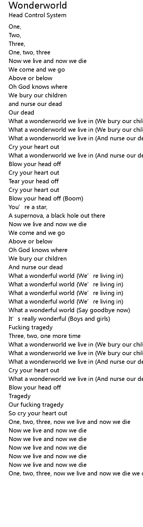 | What a wonderworld we live in We bury our children | |
