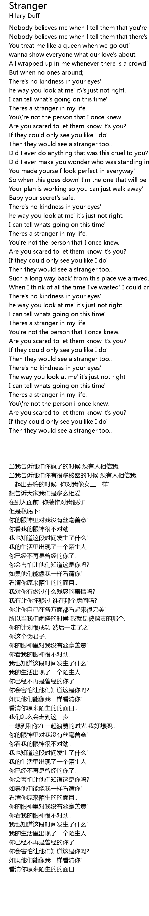Theres a stranger in my life. |