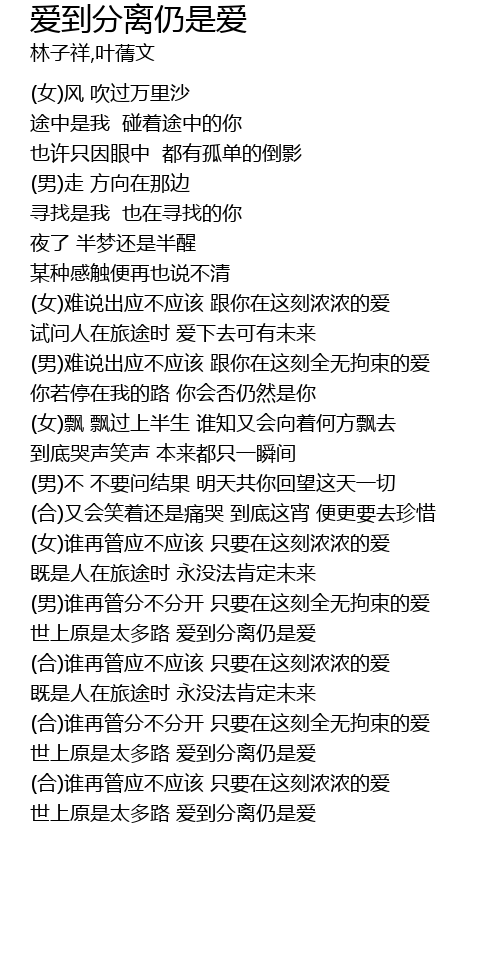 | [03:48.940] | 世上原是太多路 爱到分离仍是爱 |
