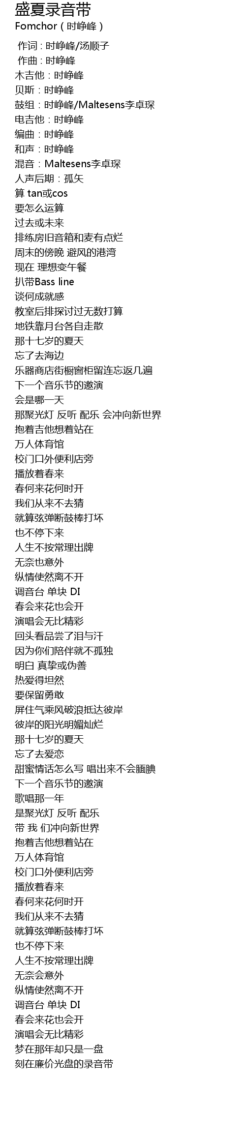 | [00:05.900] | 鼓组:时峥峰/Maltesens李卓琛 |