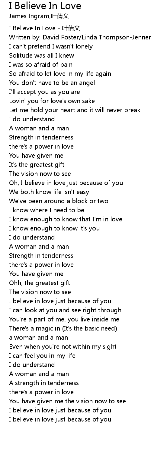 | [00:06.053] | Written by: David Foster Linda ThompsonJenner James Ingram |
