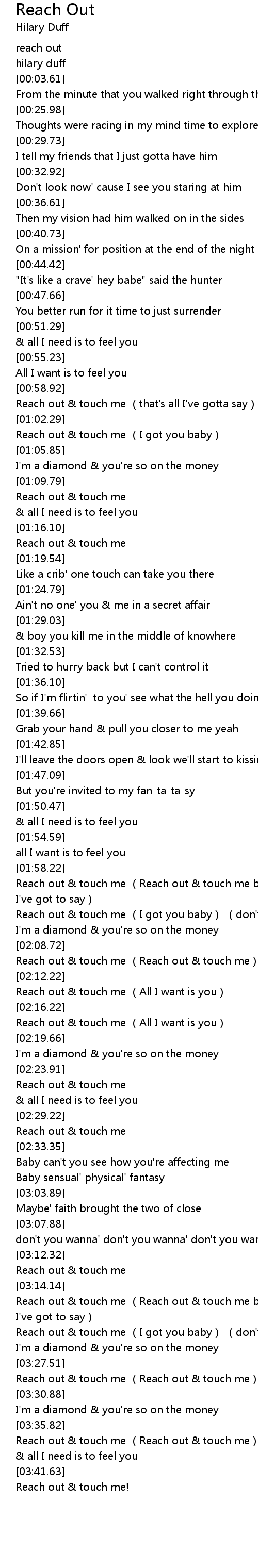 | [03:21.45] | Reach out & touch me (I got you baby) (don't you make me wait) |