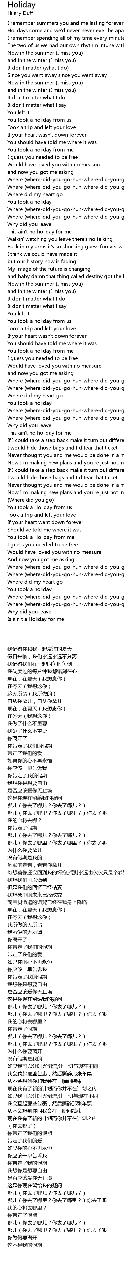 | [00:17.750] | Holidays come and we'd never never ever be apart |