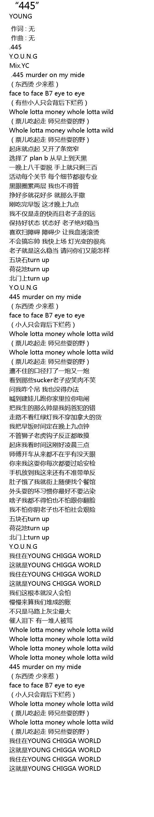 | [02:58.448] | zhè jiù shì YOUNG CHIGGA WORLD |
