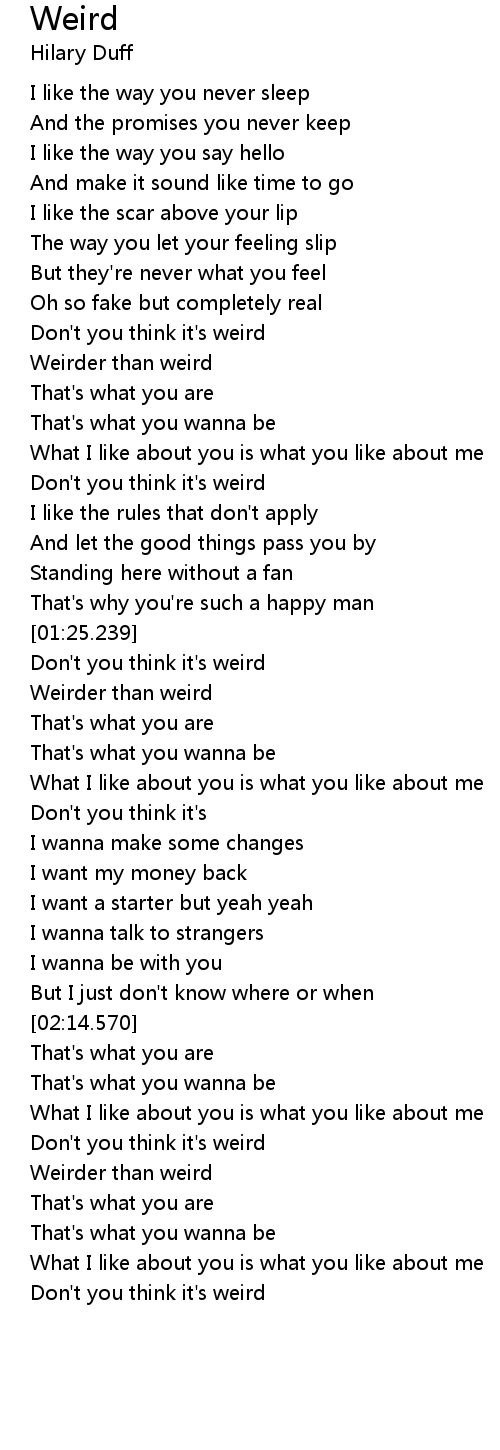 | [01:28.0] | Don' t you think it' s weird |