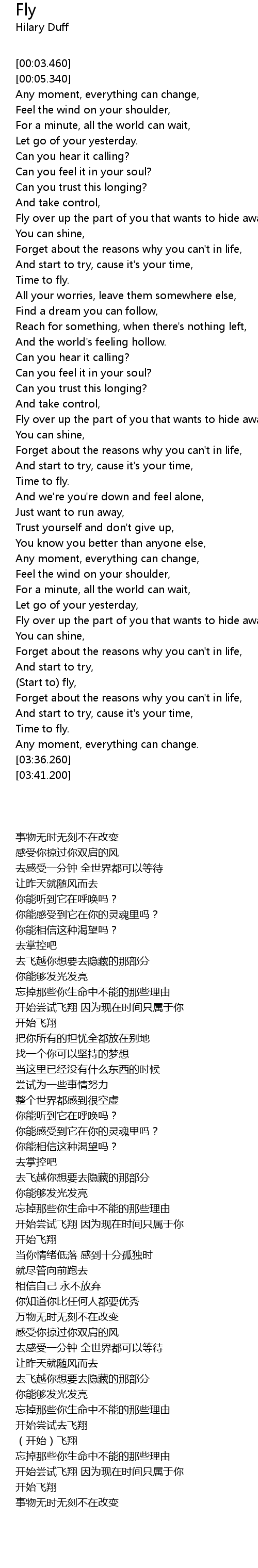 | [03:07.160] | (Start to) fly, |