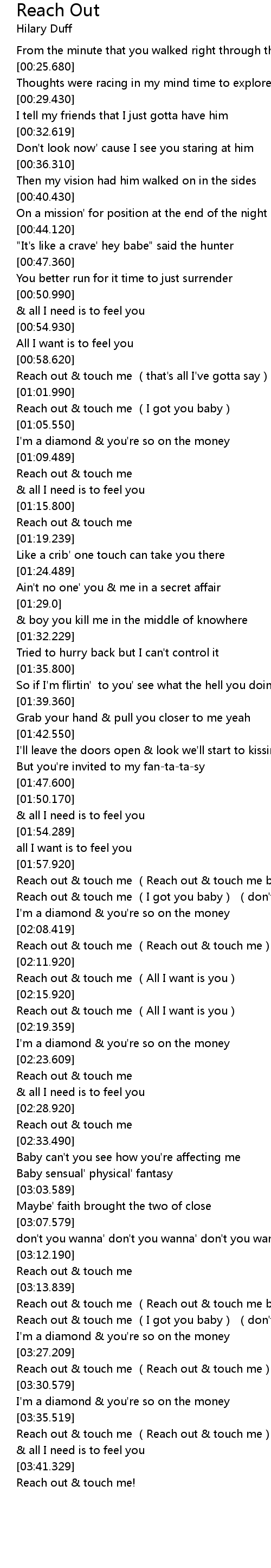 | [03:36.209] | Reach out touch me Reach out touch me |