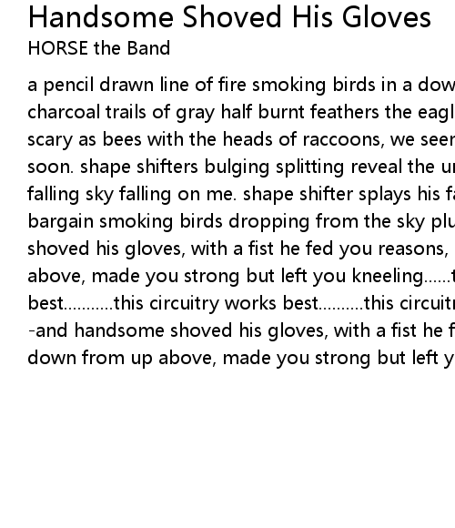a pencil drawn line of fire smoking birds in a downward spiral trails of charcoal trails of gray half burnt feathers the eagle crash-landing now. as scary as bees with the heads of raccoons, we seem to have split the embryo too soon. shape shifters bulging splitting reveal the underneath flaming stars, falling sky falling on me. shape shifter splays his face again a terrible bargain smoking birds dropping from the sky plummeting PLUMMETING! -and handsome shoved his gloves, with a fist he fed you reasons, brought you down from up above, made you strong but left you kneeling......this circuitry works best...........this circuitry works best..........this circuitry works best.... -and handsome shoved his gloves, with a fist he fed you reasons, brought you down from up above, made you strong but left you kneeling. |