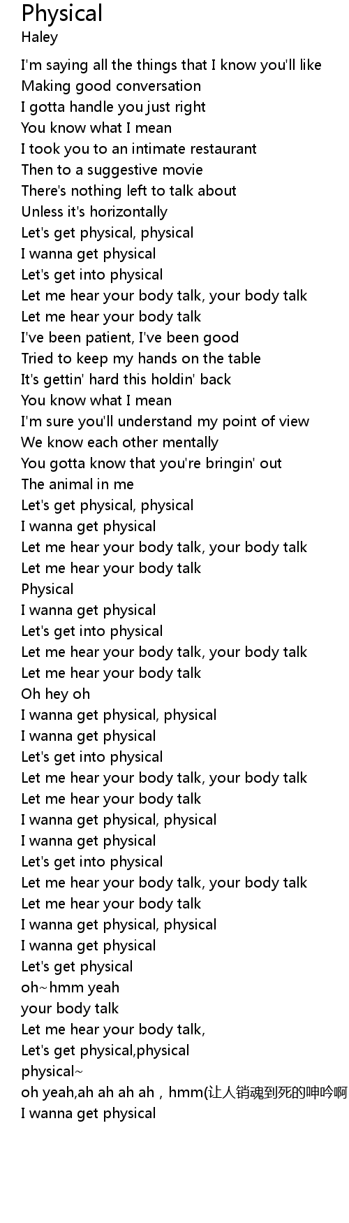 | [01:09.96] | Let' s get into physical |