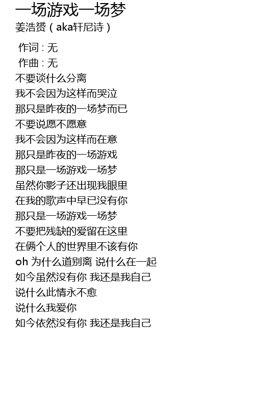 | [01:15.683] | 那只是一场游戏一场梦 |