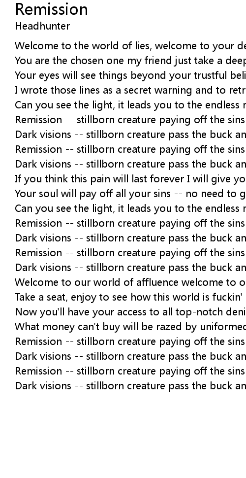 Remission -- stillborn creature paying off the sins |