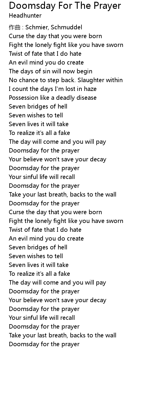 | Song | Doomsday For The Prayer |