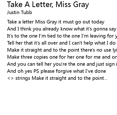| Song | Take A Letter, Miss Gray |