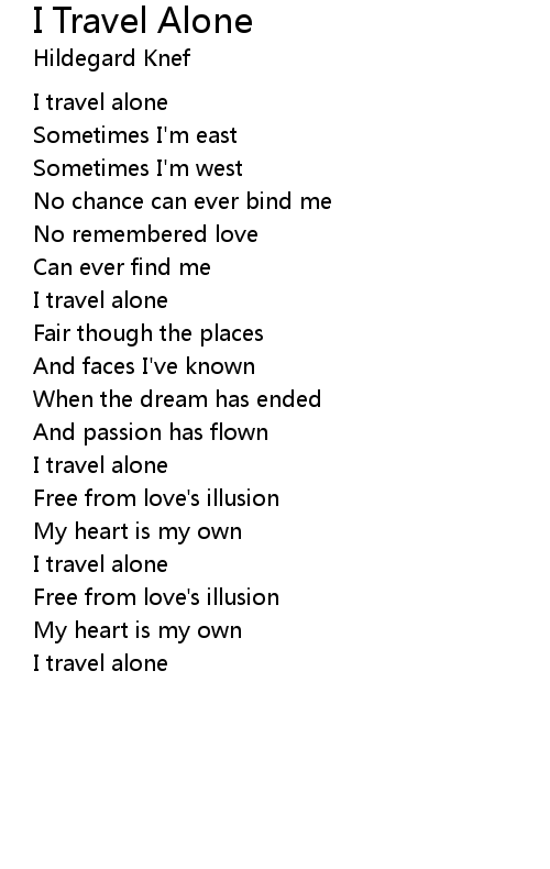 | I travel alone | |
