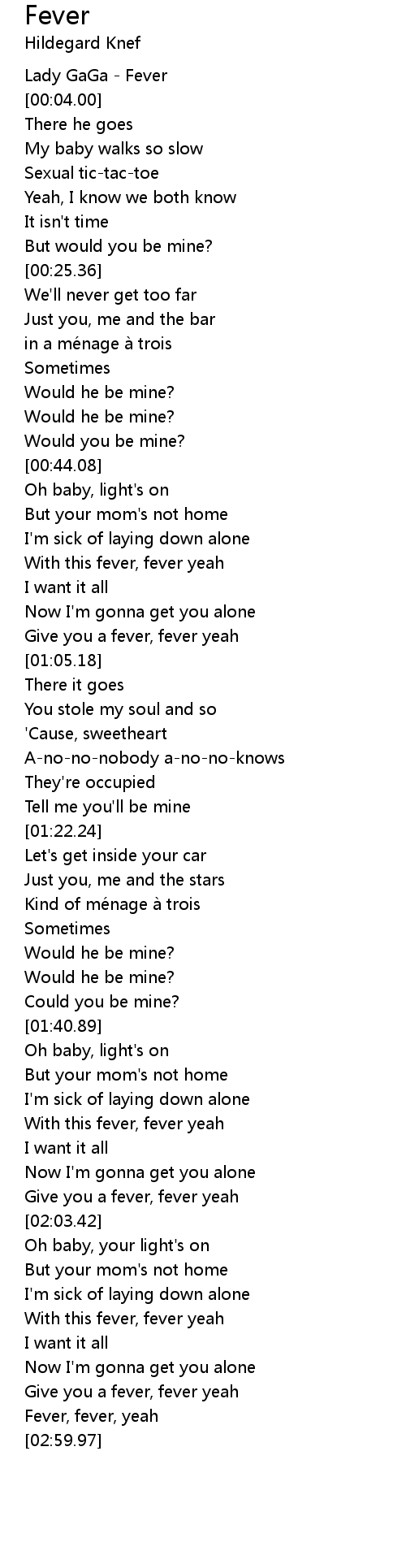 | [02:55.59] | Fever, fever, yeah |