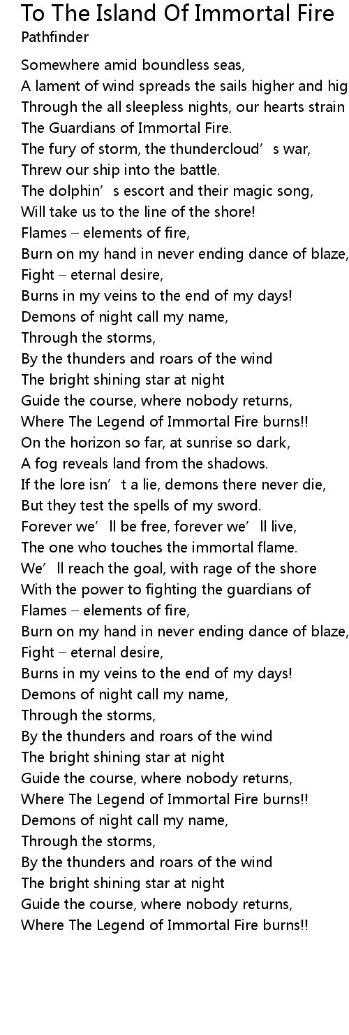 | Song | To The Island Of Immortal Fire |