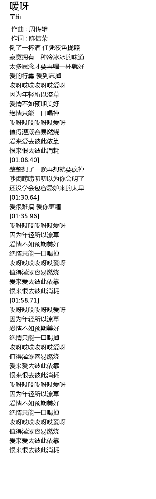 | [02:19.66] | 哎呀哎哎哎呀哎爱呀 |