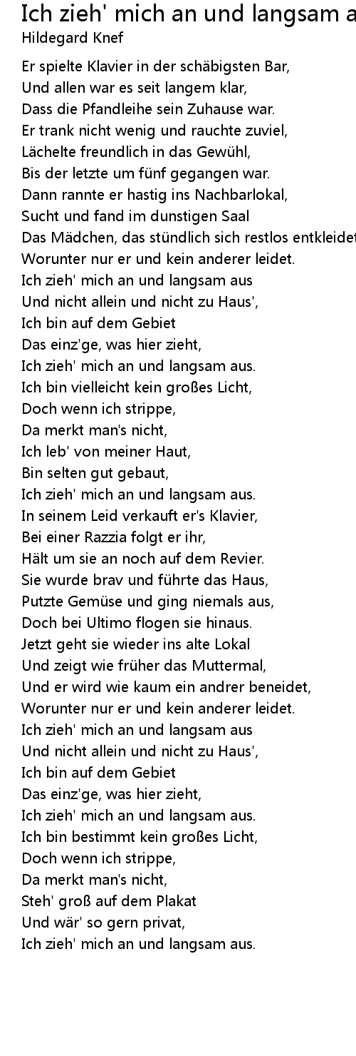 | Das M dchen, das stü ndlich sich restlos entkleidet, | |