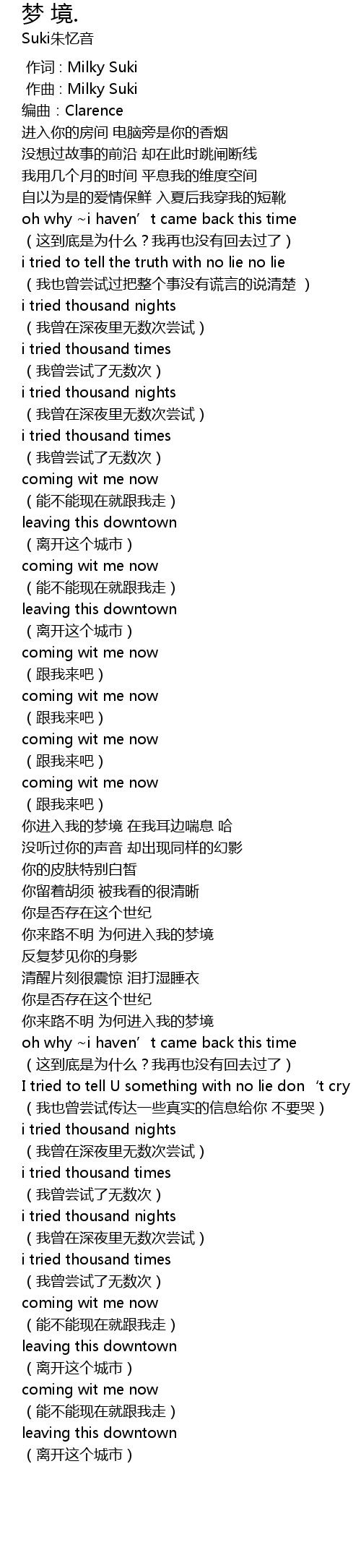 | [02:47.429] | nǐ lái lù bù míng wèi hé jìn rù wǒ de mèng jìng |