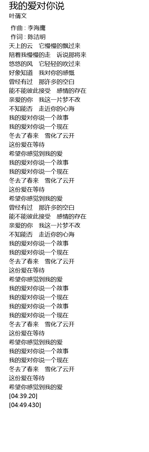 | [04:09.930] | wo de ai dui ni shuo yi ge xian zai |