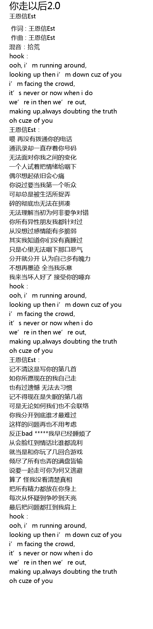 | [00:00.834] | zuo qu : wang en xin Est |