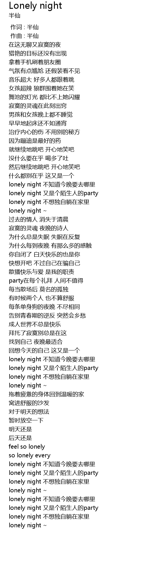 | [00:58.638] | lonely night you shi ge mo sheng ren de party |