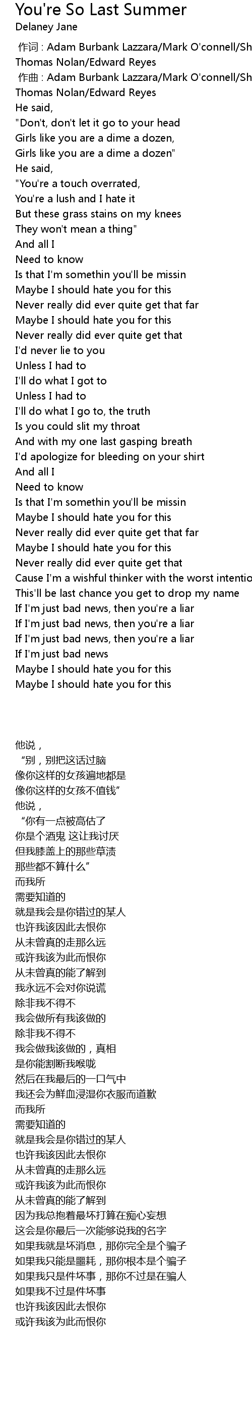 | [00:00.000] | 作词 : Adam Burbank Lazzara/Mark O'connell/Shaun Cooper/John Thomas Nolan/Edward Reyes |