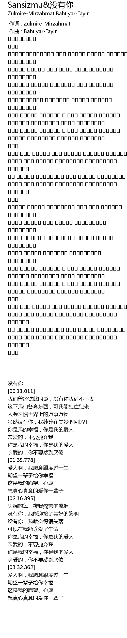 [00:00.000] 作词 : Zulmire-Mirzahmat