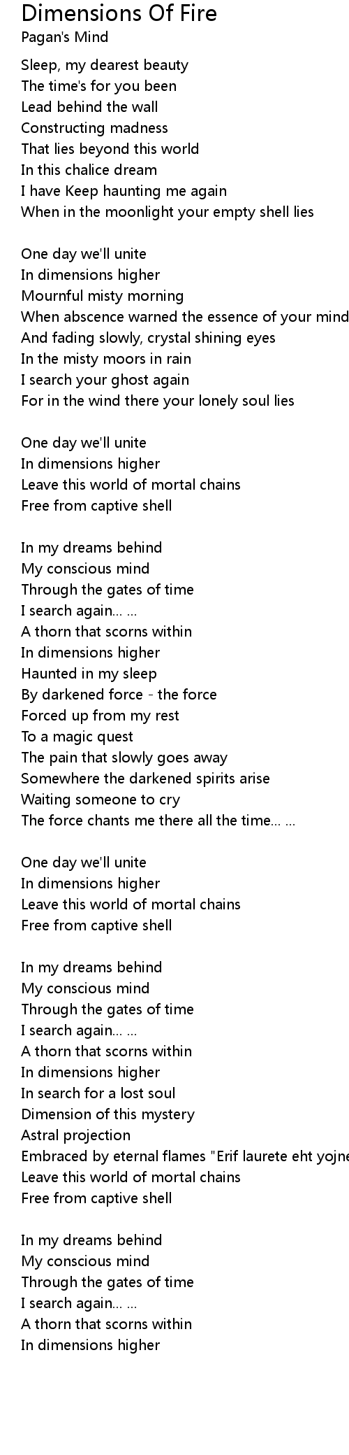 Song Dimensions Of Fire