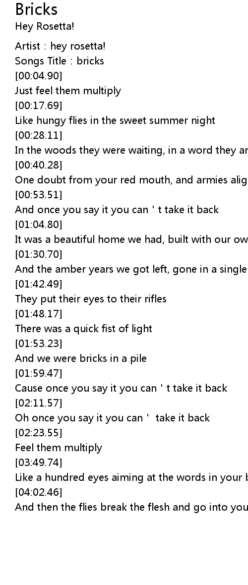 | [00:03.47] | Songs Title: bricks |