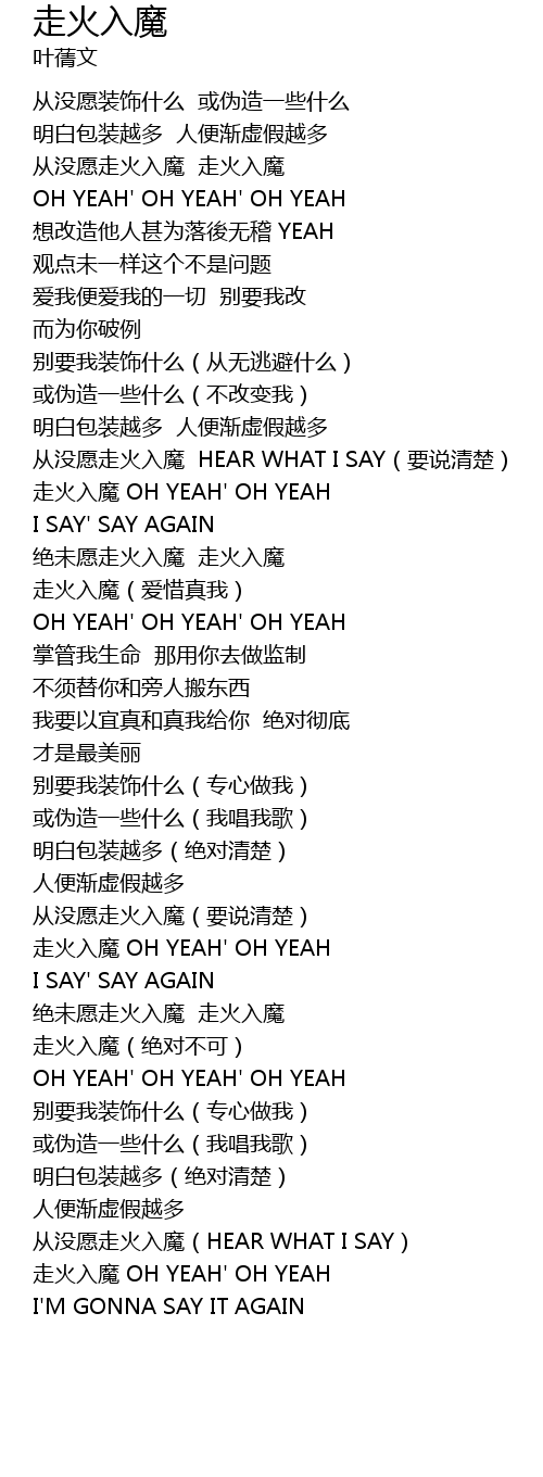 | [00:53.55] | zǒu huǒ rù mó OH YEAH' OH YEAH |