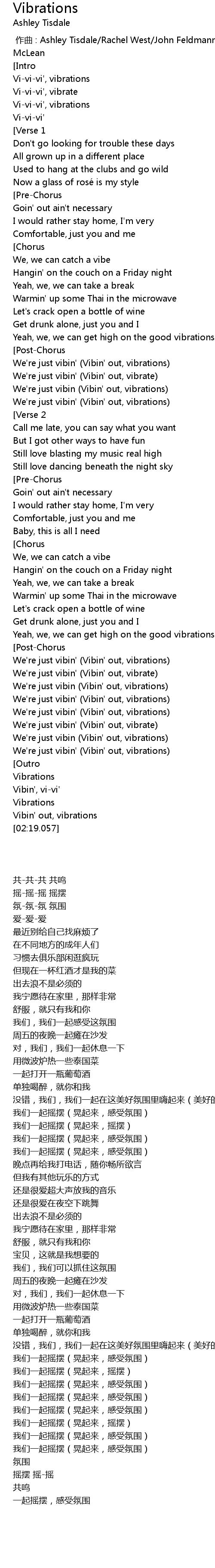 | [01:52.123] | We' re just vibin Vibin' out, vibrations |