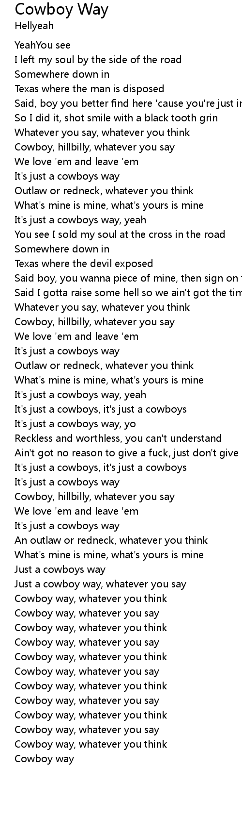 | Just a cowboy way, whatever you say | |
