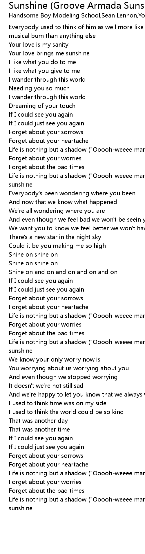 Life is nothing but a shadow ("Ooooh-weeee man!") without your sunshine |