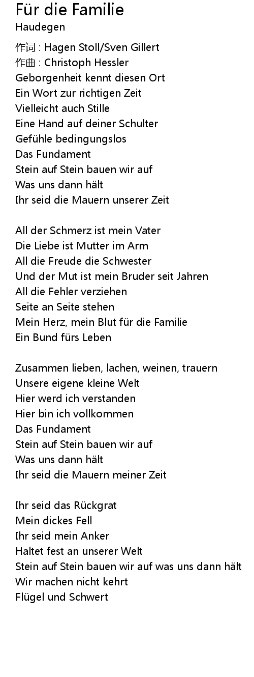 | 作词 : Hagen Stoll/Sven Gillert | |