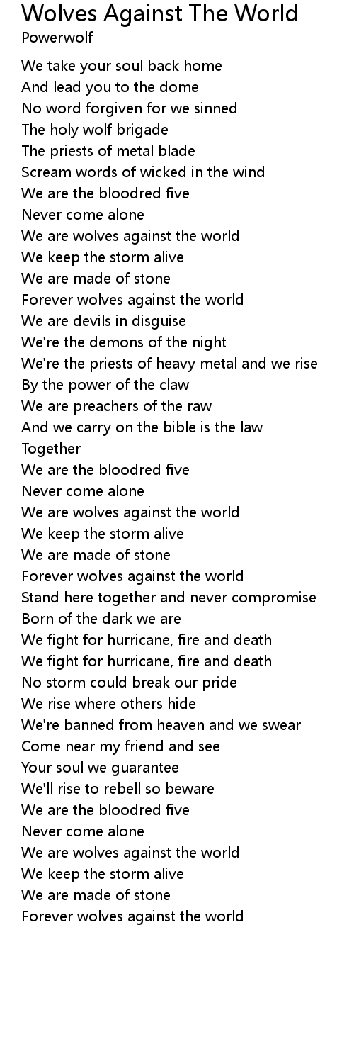 Wolves Against The World Lyrics