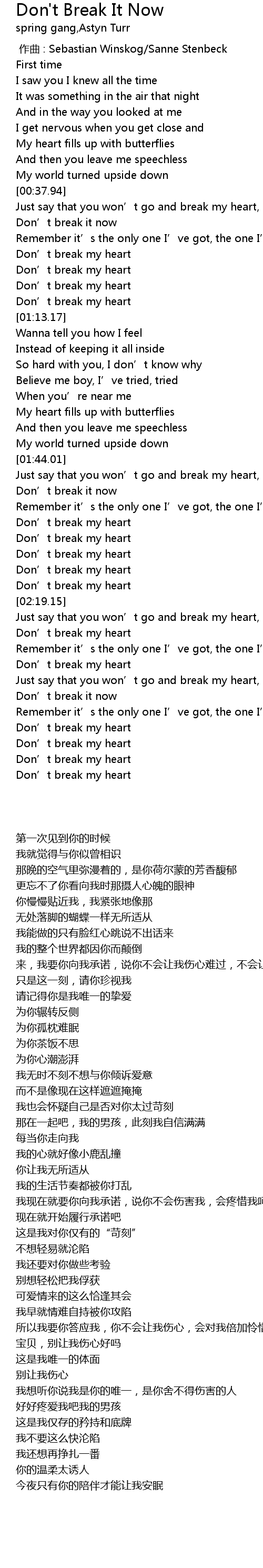 | [00:42.00] | Just say that you won’t go and break my heart, break my heart |