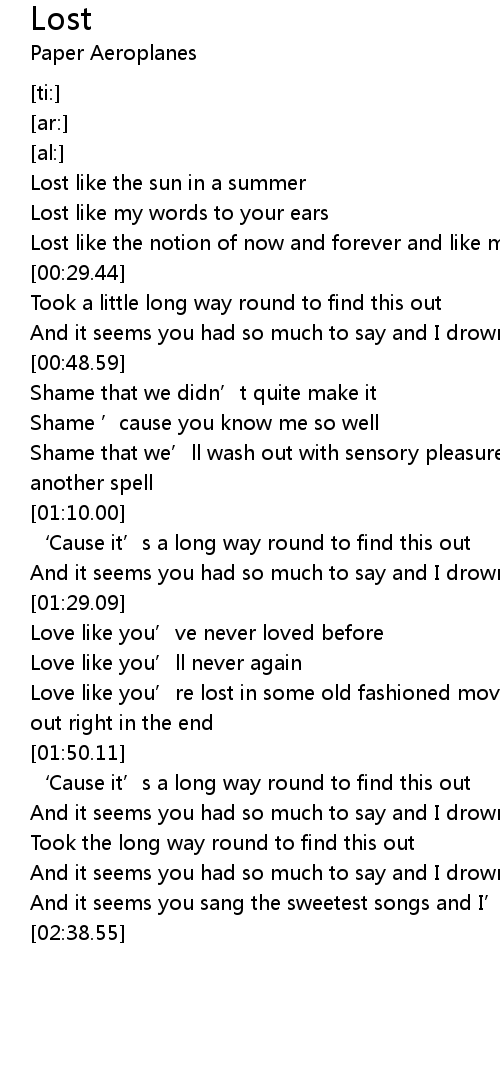 | [02:29.04] | And it seems you sang the sweetest songs and I' m lost without |