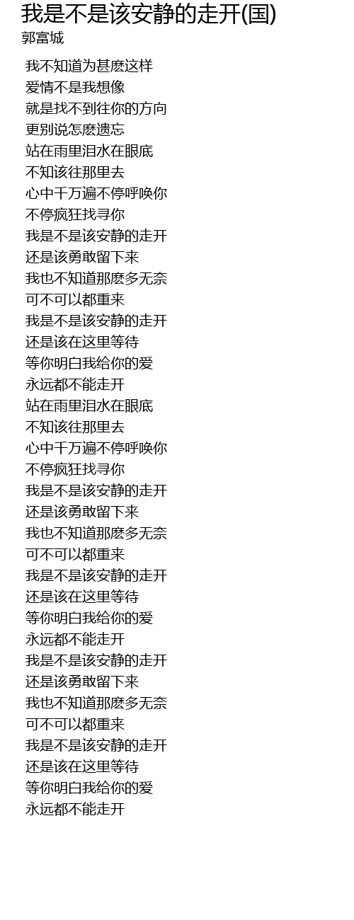 | [02:58.300] | wǒ shì bú shì gāi ān jìng de zǒu kāi |
