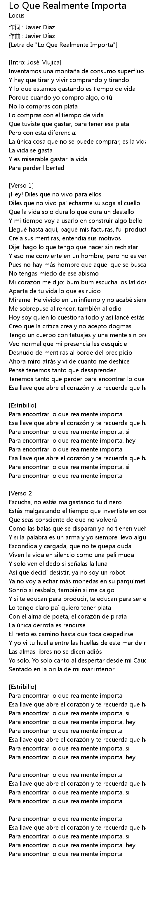 | [Letra de "Lo Que Realmente Importa"] | |