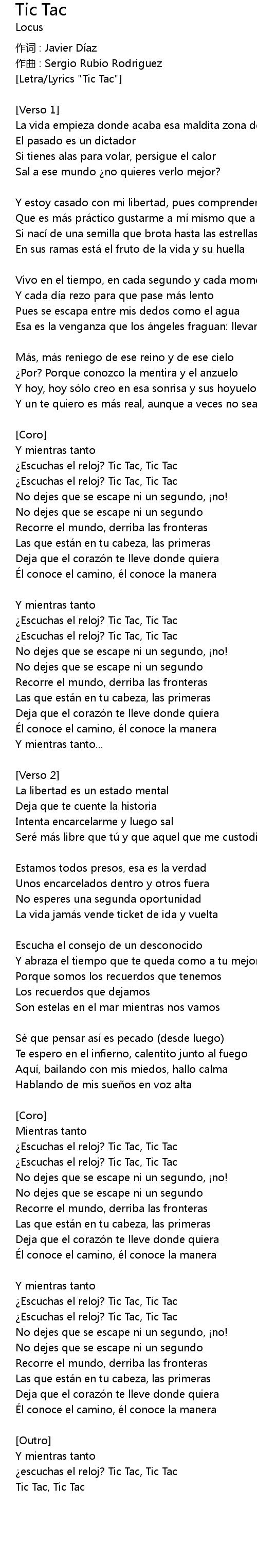 | Escuchas el reloj? Tic Tac, Tic Tac | |