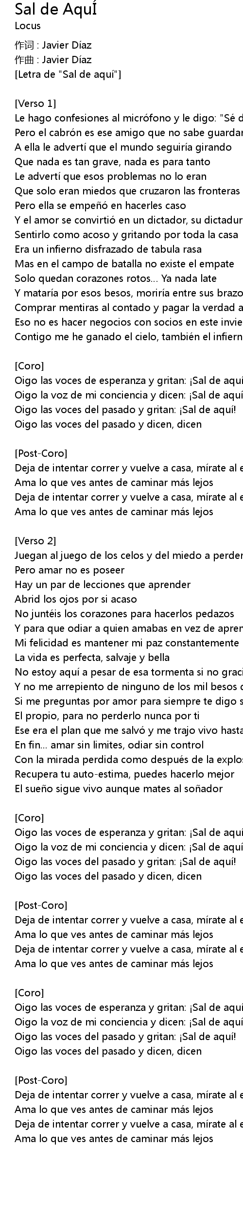 | [Letra de "Sal de aquí"] | |