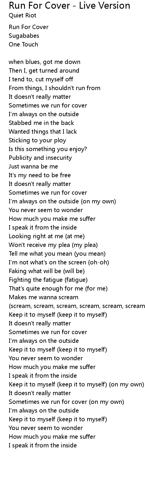 Run For Cover - Live Version Lyrics