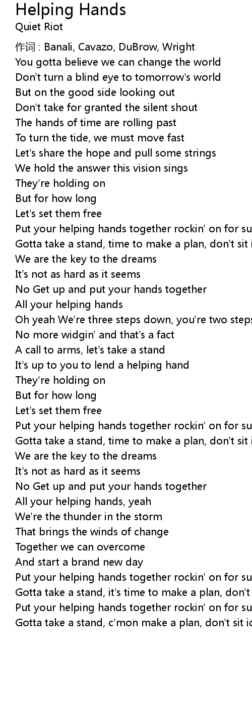 | Put your helping hands together rockin' on for survival Yeah yeah | |