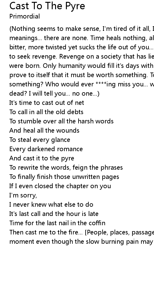 Then cast me to the fire... [People, places, passages in time, seizing the moment even though the slow burning pain may consume you...] |