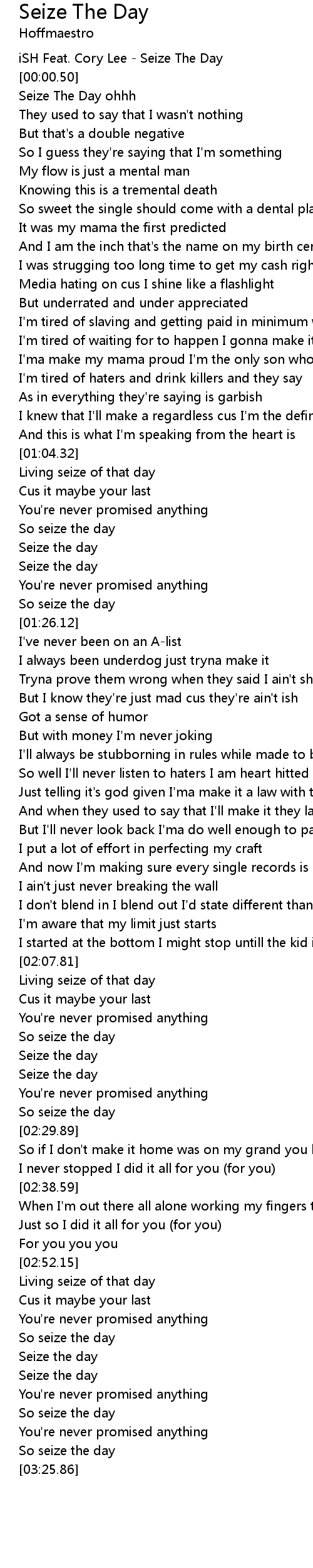 Seize The Day ohhh |