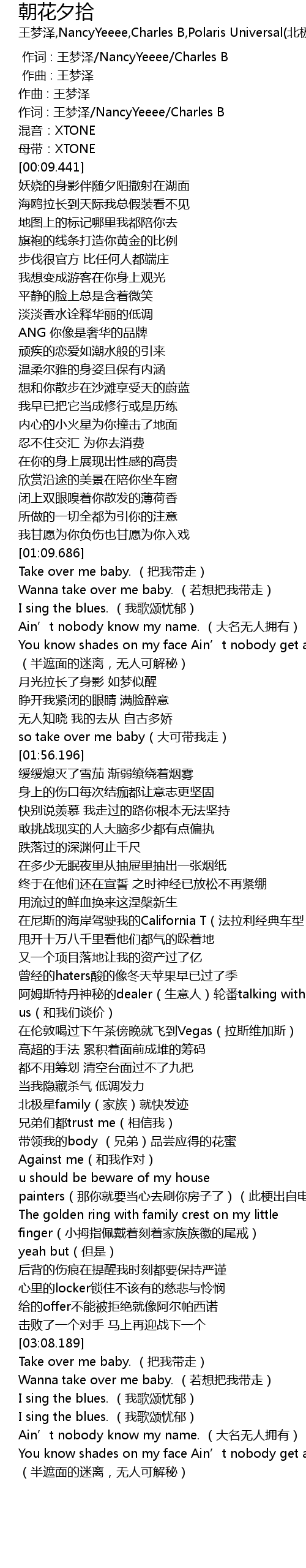 | [00:03.696] | zuo ci : wang meng ze NancyYeeee Charles B |