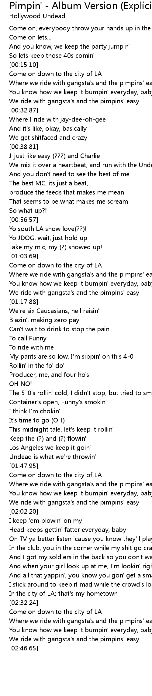 [02:35.56] Where we ride with gangsta's and the pimpins' easy