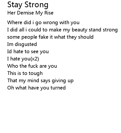 | Song | Stay Strong |