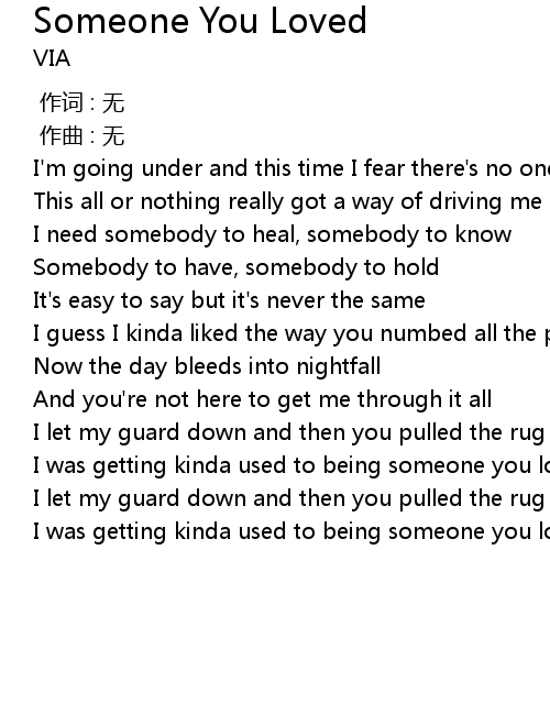 | [01:00.06] | I was getting kinda used to being someone you loved |